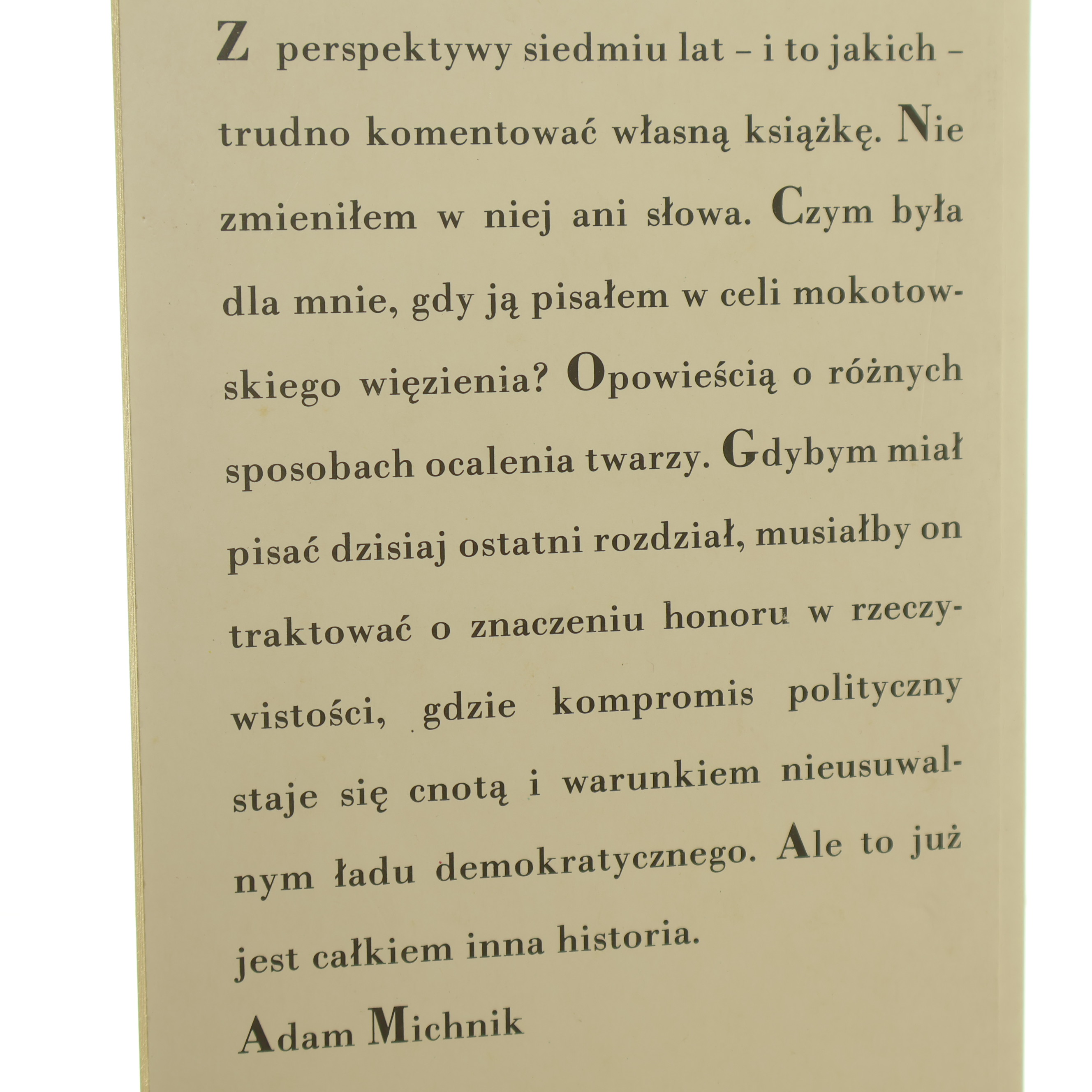 Z dziejów honoru w Polsce wypisy więzienne Michnik Adam [1991]
